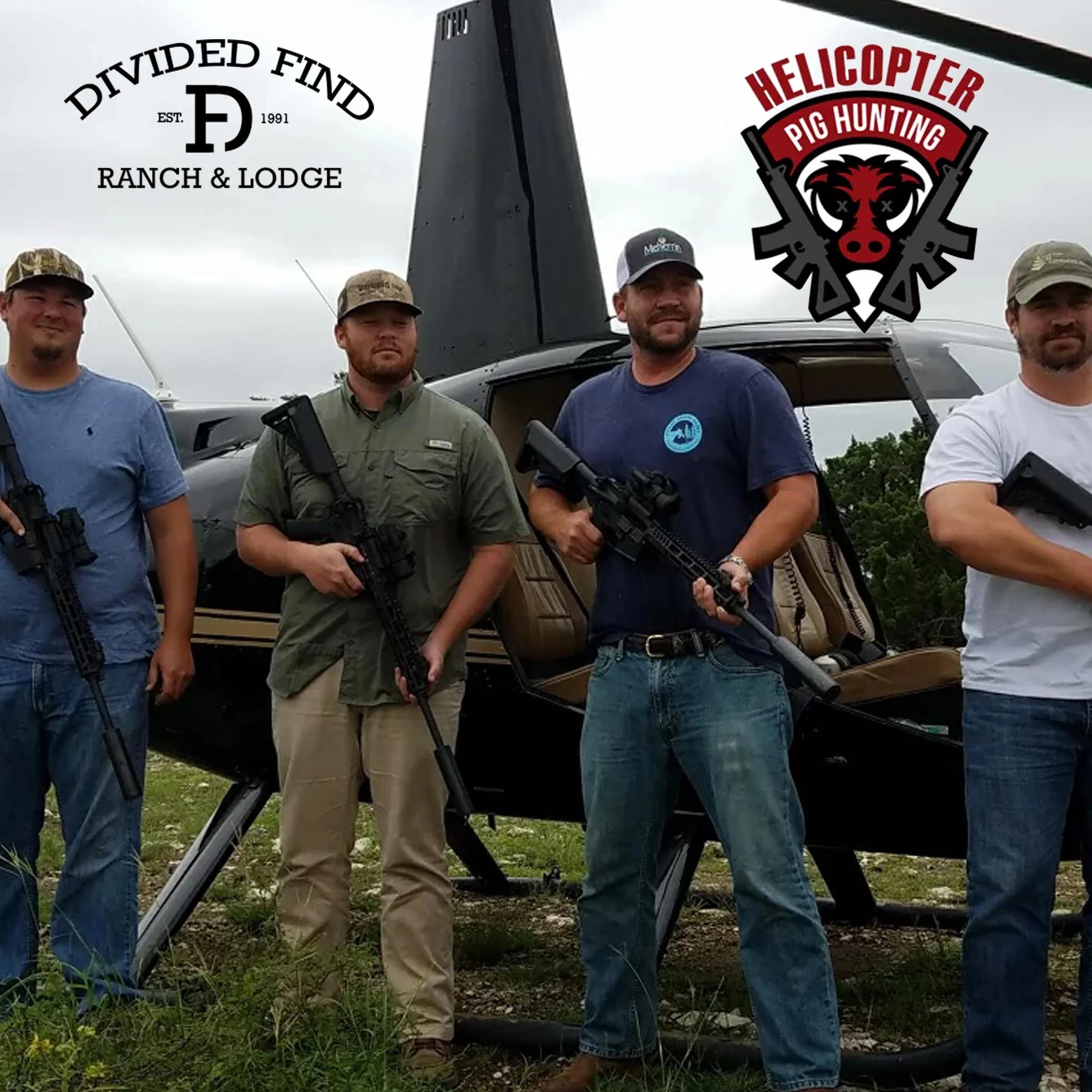 Helicopter Pig Hunt Package – 1 night lodging, 1 2-hour helicopter hunt (double occupancy), valid 7 days a week during the months of May through September at Divided Find Ranch near San Angelo, Texas